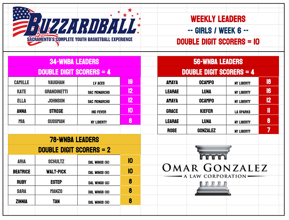 LISTED BELOW are the SCORING LEADERS for the 2026 season as well as the leading scorers for each week.